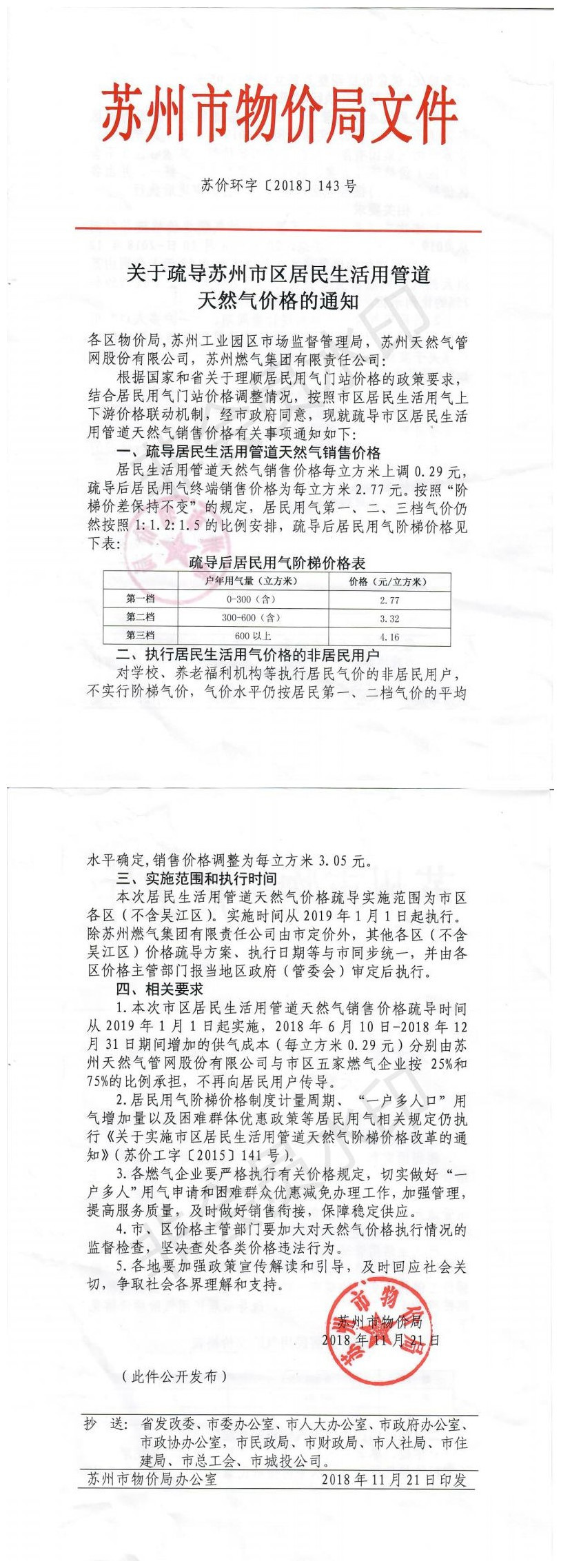 关于疏导苏州市区居民生活用管道天然气价格的通知