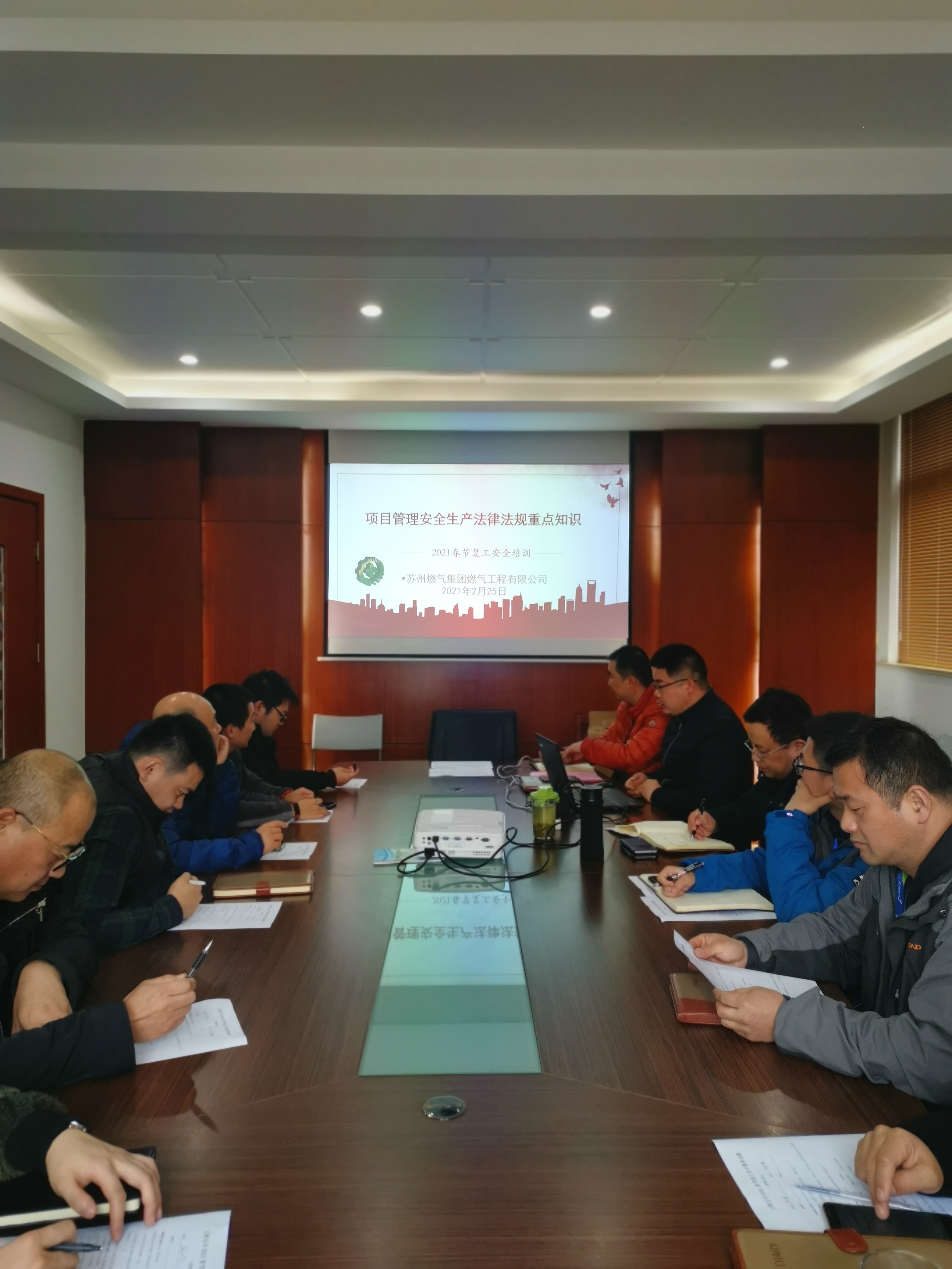 2020年2月25日下午,燃气工程公司组织开展春节后复工动员大会和安全生产知识培训。会上,首先公司领导要求各部门保持良好的工作状态,认真落实各项工作,进一步提升公司的施工能力。同时号召全体员工强化安全红线意识,以攻坚克难、敢于担当的精神状态保质保量完成年度施工生产任务。