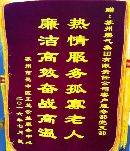 “暖心行动”燃气安全检查服务进社区,在关心老人的同时,切实解决了他们的实际困难。8月4日老人们委托社区送来了“热情服务孤寡老人,廉洁高效奋战高温”的锦旗,表示感谢政府感谢党和有关工作人员,让他们感受到了社会的关爱与尊重。面对这锦旗我们工作人员也是心潮澎湃,继续秉承为人民服务的优良作风,全心全意地为人民服务,我们每个燃气人为之奋斗。