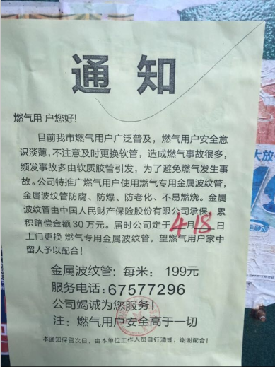 客服热线接到很多客户来电询问关于小区内集中张贴通知更换金属管(波纹管)及入户安装的事宜。经调查后发现,此类通知皆为骗子所为。韩国av
